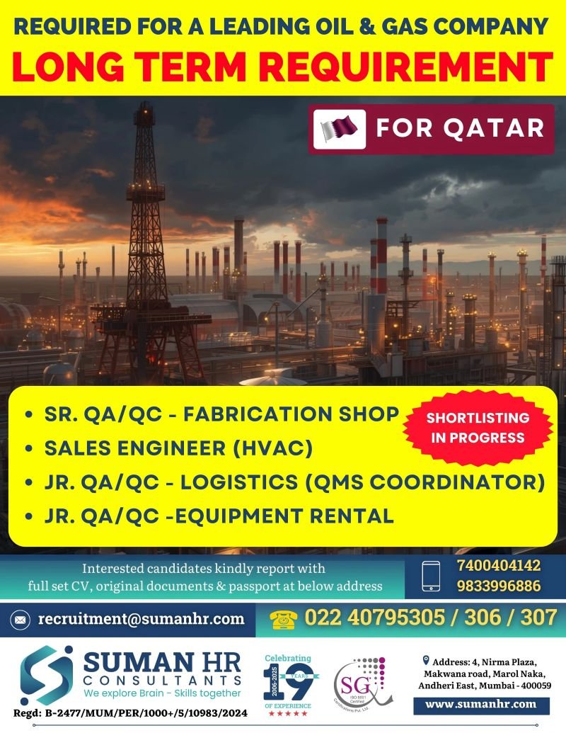 A leading Oil & Gas sector company in Qatar has announced urgent long-term vacancies with excellent salary packages, free accommodation, food, and other Gulf-standard benefits.