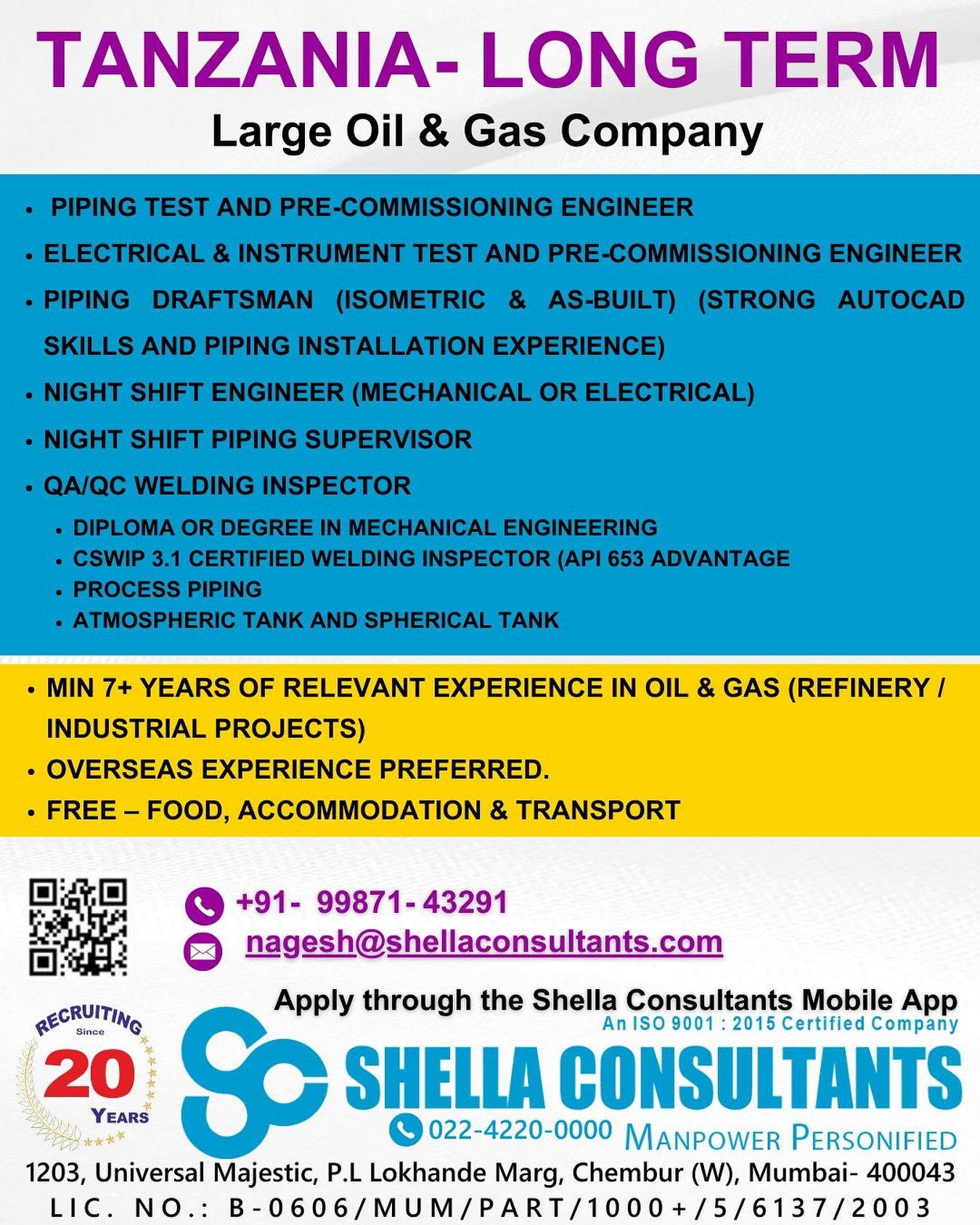 - SEO Keywords: Oil and gas jobs Tanzania 2025, piping engineer vacancies Africa, QA/QC welding inspector jobs, pre-commissioning engineer Gulf East, Shella Consultants hiring, refinery projects abroad.