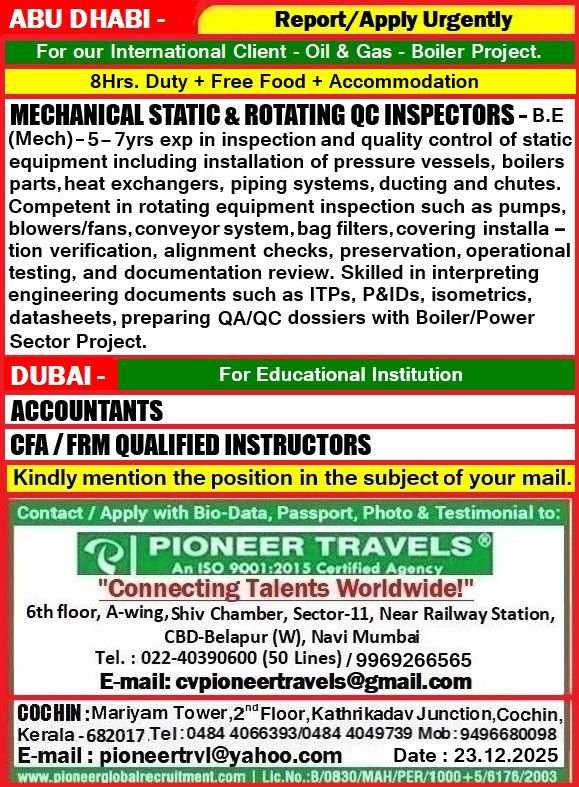 SEND YOUR CV,TESTIMONIALS & PASSPORT COPY TO cv@bhamco.in