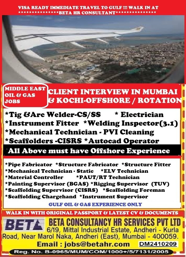 Walk-in to our MUMBAI office for shortlisting and scheduling interview OR send biodata and document copies to Email: resume@betahr.com