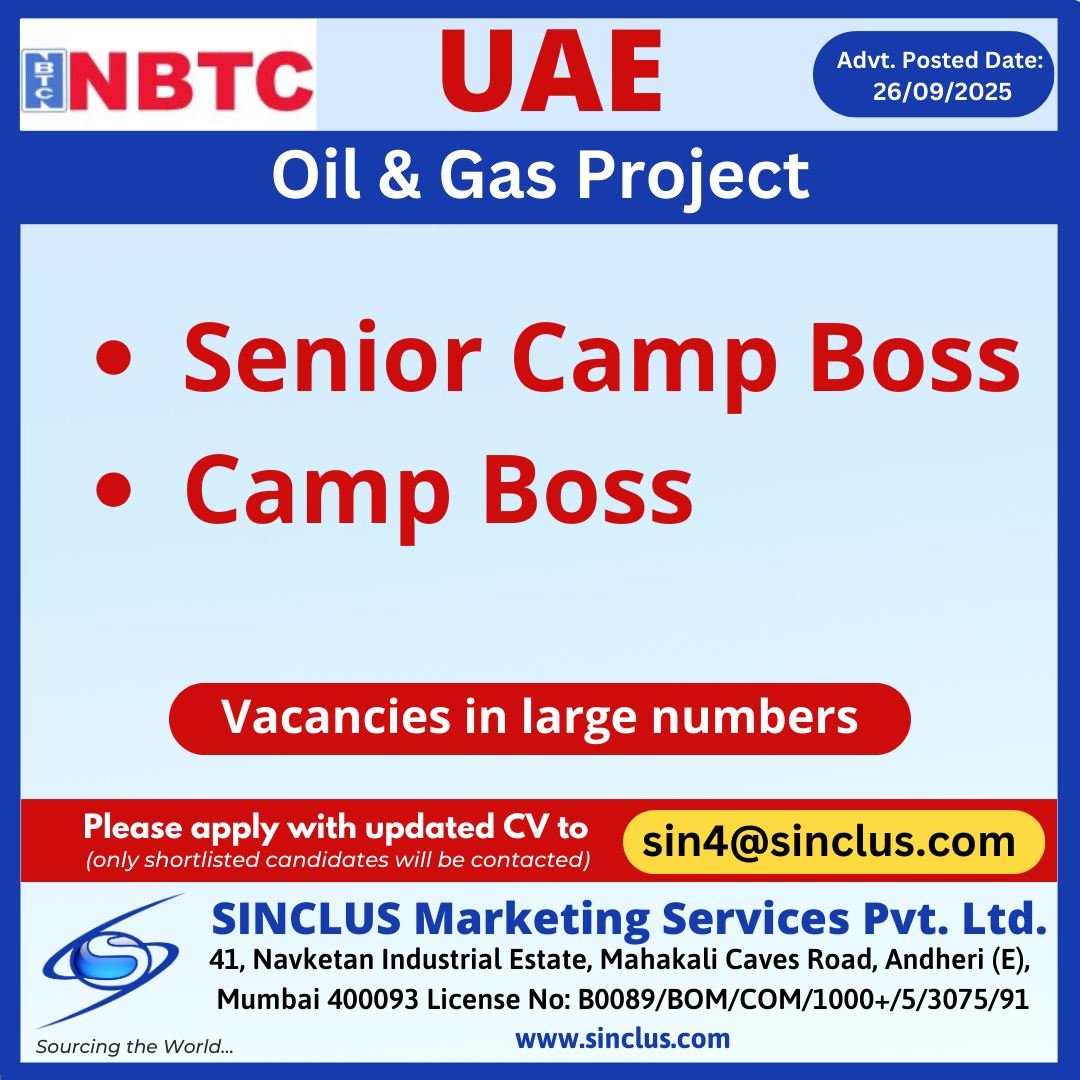 Now Hiring – Senior Camp Boss & Camp Boss for NBTC, UAE