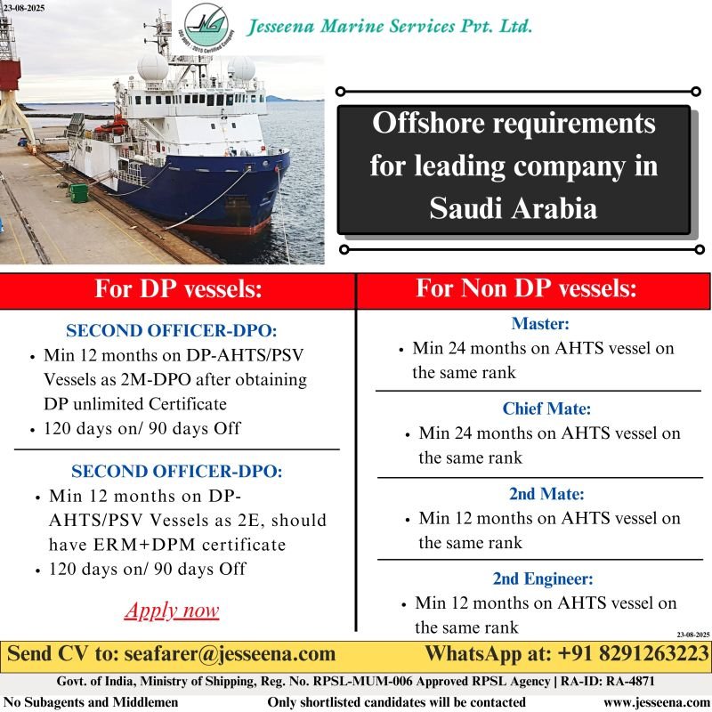Send CV to seafarer@jesseena.com
