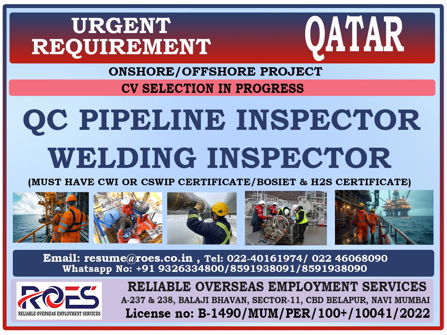 Urgent Job Openings in Qatar – QC Pipeline & Welding Inspectors for Onshore/Offshore Projects