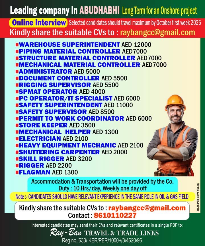 UAE – Long-Term Job Opportunities with a Leading Company in Abu Dhabi for an Onshore Project
