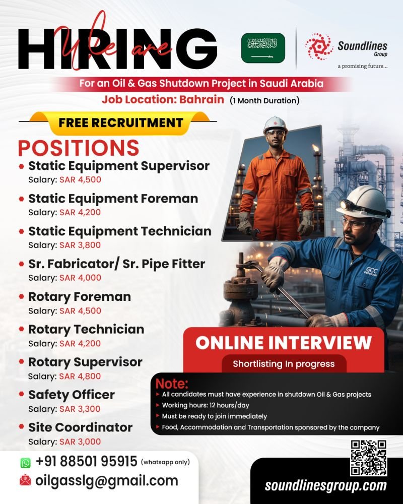Hiring For an Oil & Gas Shutdown Project in Saudi Arabia