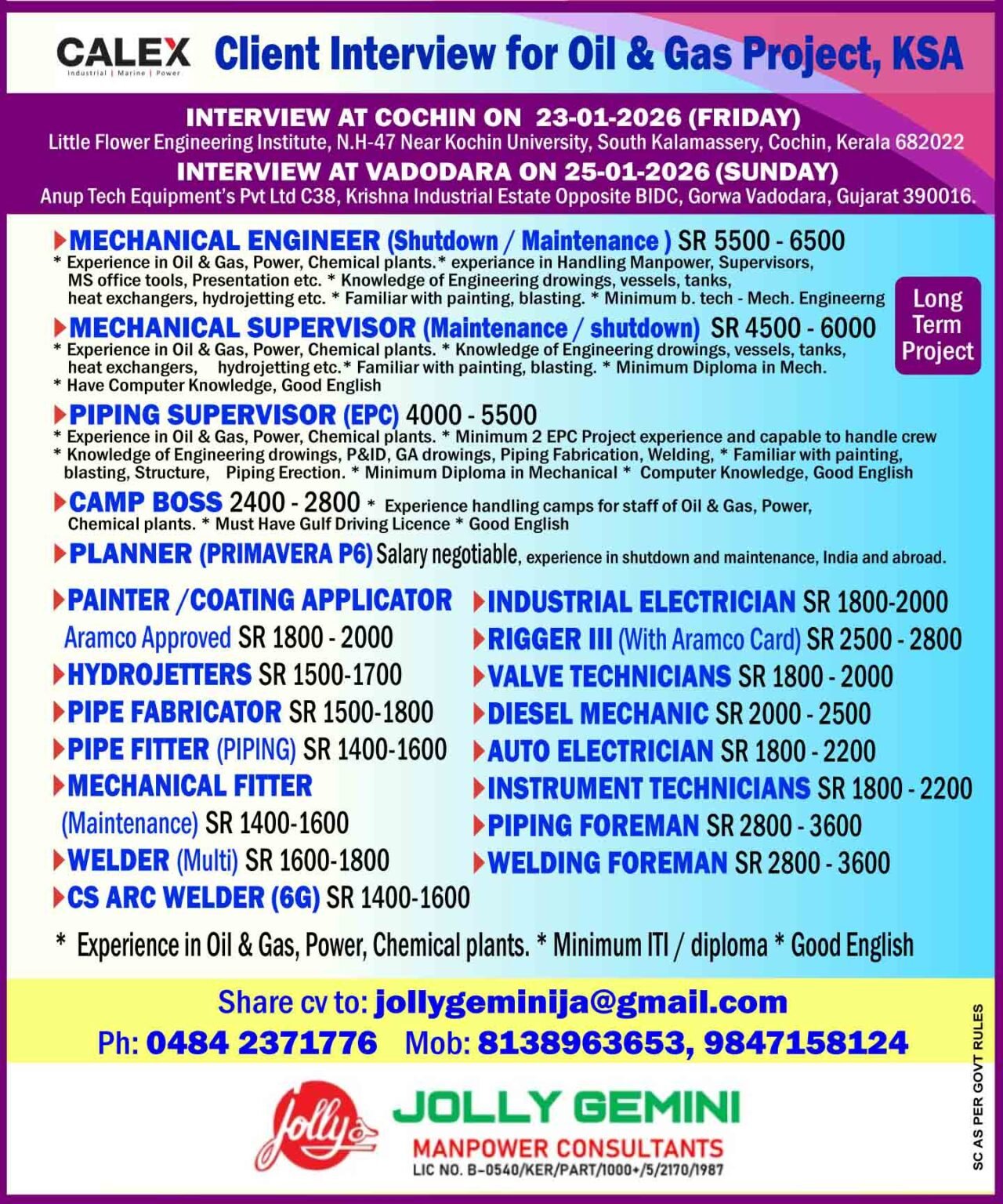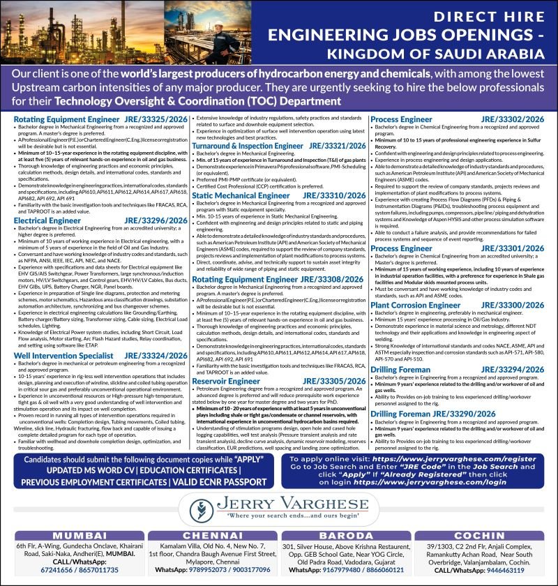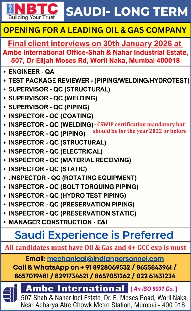 Saudi Arabia Oil & Gas Jobs – Urgent Final Client Interviews on 30th January 2026