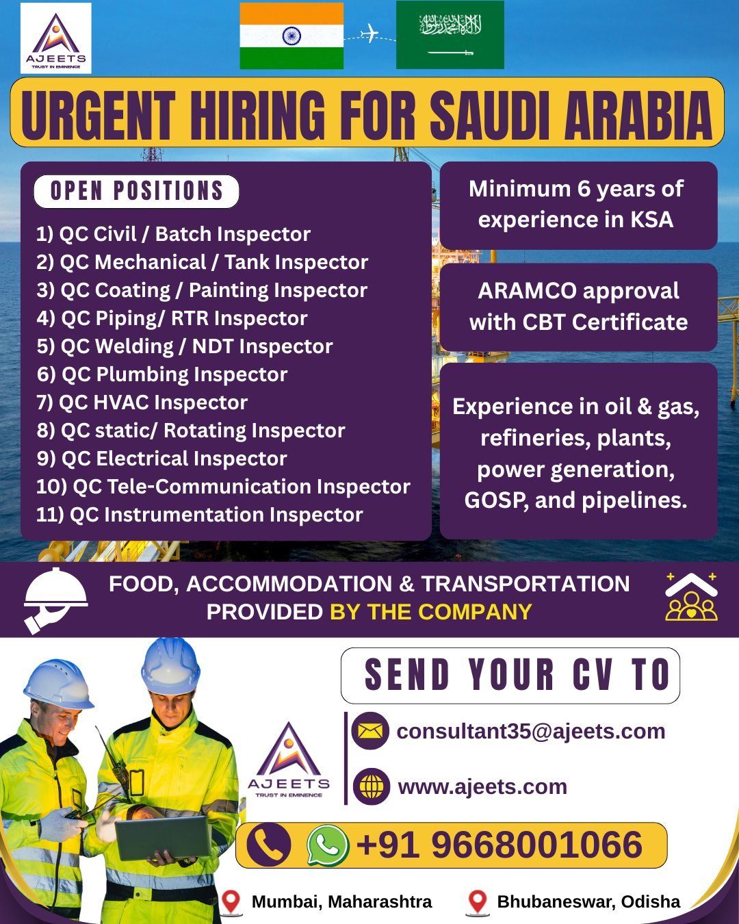 Saudi Arabia Oil & Gas QC Jobs – Urgent Hiring for ARAMCO