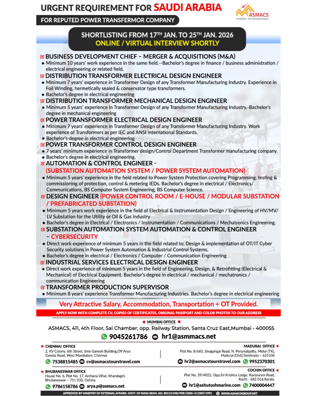 Saudi Arabia Water & Power Technology Jobs – Interview on 22 January 2026 at Mumbai