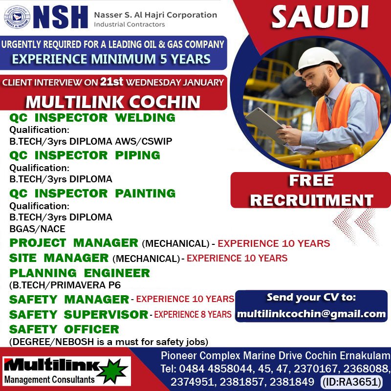 hiring for a leading Oil & Gas company in Saudi Arabia.