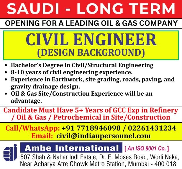 Urgent Saudi Arabia Civil Engineer Job 2026 – Leading Oil & Gas Company | Long-Term Project
