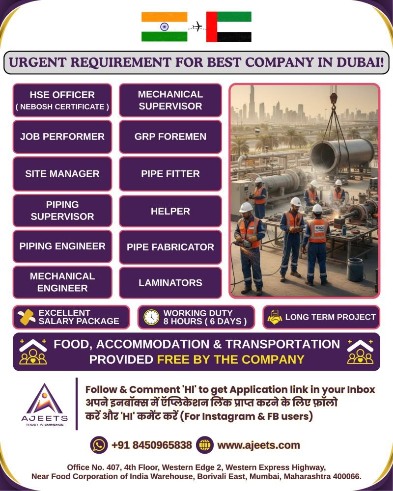 Urgent Hiring for Dubai – Top Company | Free Food, Accommodation & Transportation