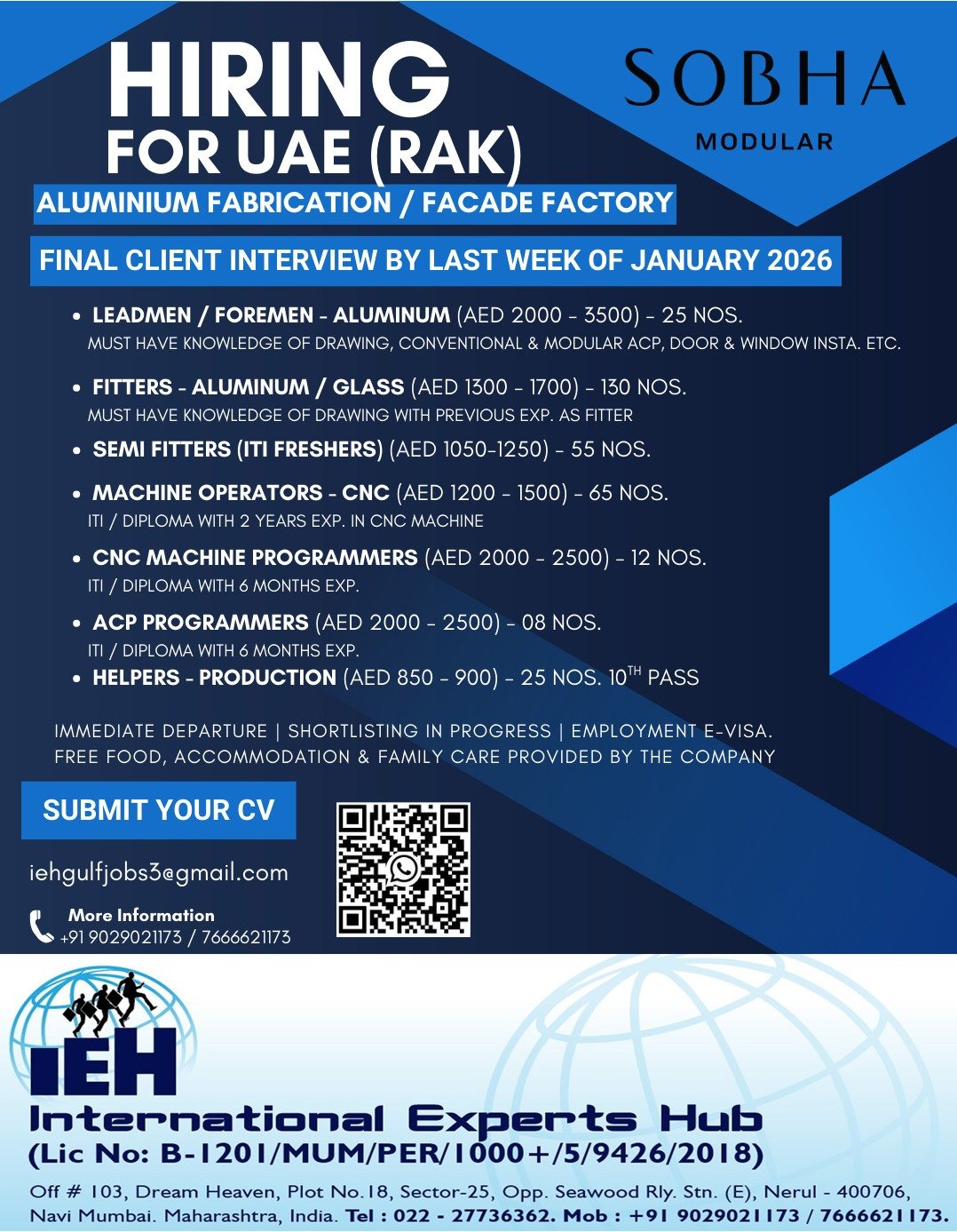 UAE (RAK) Jobs – Urgent Hiring for Sobha Modular Aluminium Fabrication & Facade Factory
