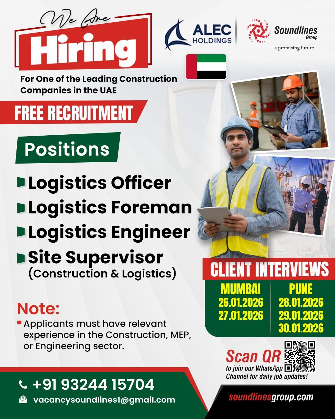 Abu Dhabi (UAE) Oil & Gas Construction Project – Urgent Walk-in Interviews on 19th & 20th January 2026
