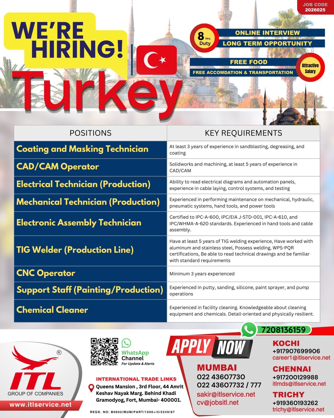 Turkey Jobs 2026: Urgent Hiring for Reputed Company – Online Interviews