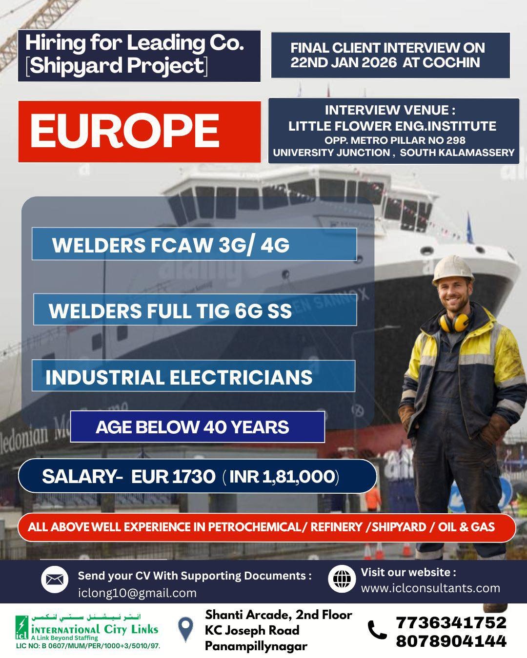 Urgent Hiring for Leading Shipyard Project in Europe – Client Interview on 22nd January 2026