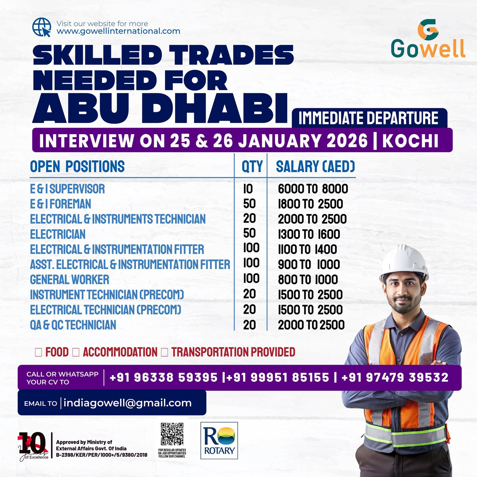 Urgent Hiring For Abu Dhabi – Immediate Departure | Interviews on 25th & 26th January 2026