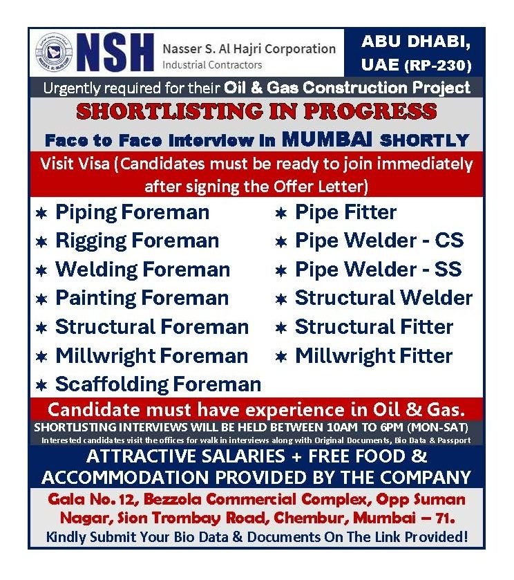 UAE Jobs – Hiring For NSH Oil Gas Company