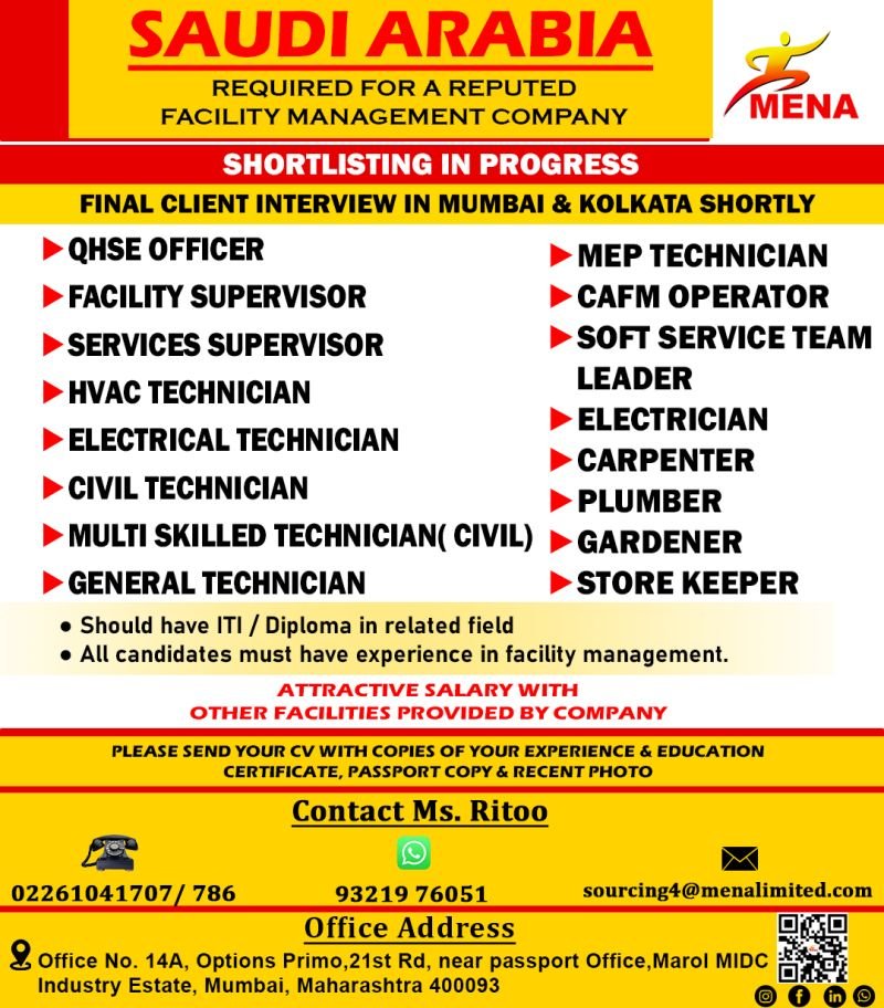 Recruiting For a Leading Facility Management Company in Qatar (Doha)