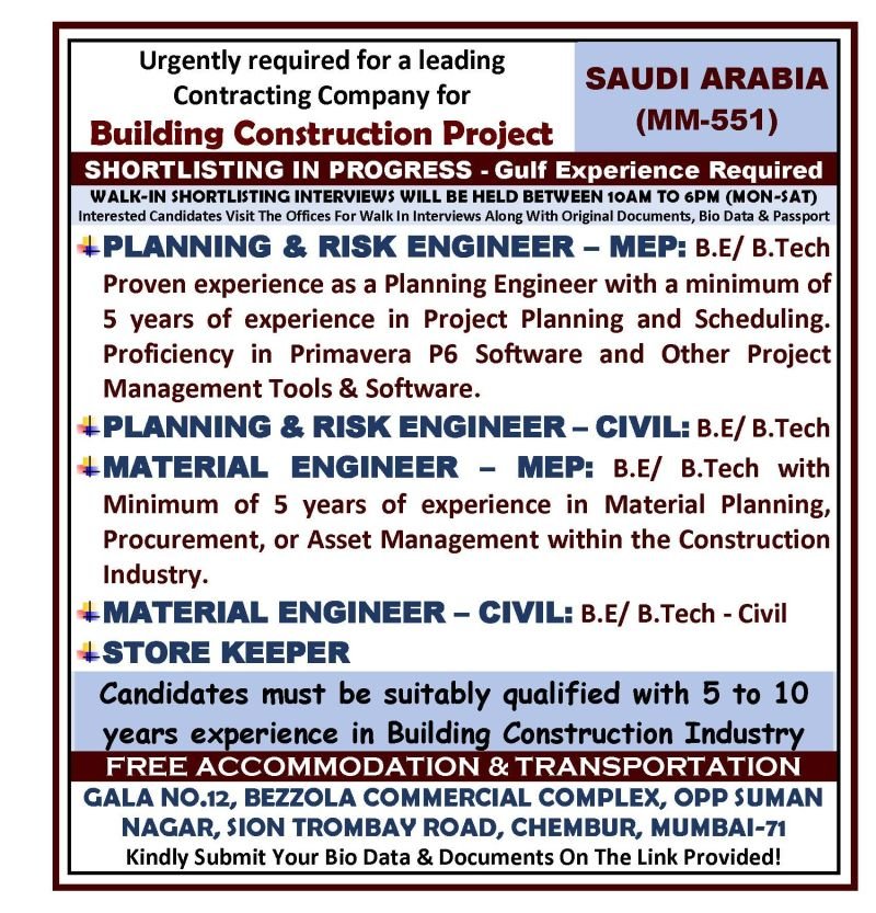Hiring for Leading Construction Company in Saudi Arabia 2025