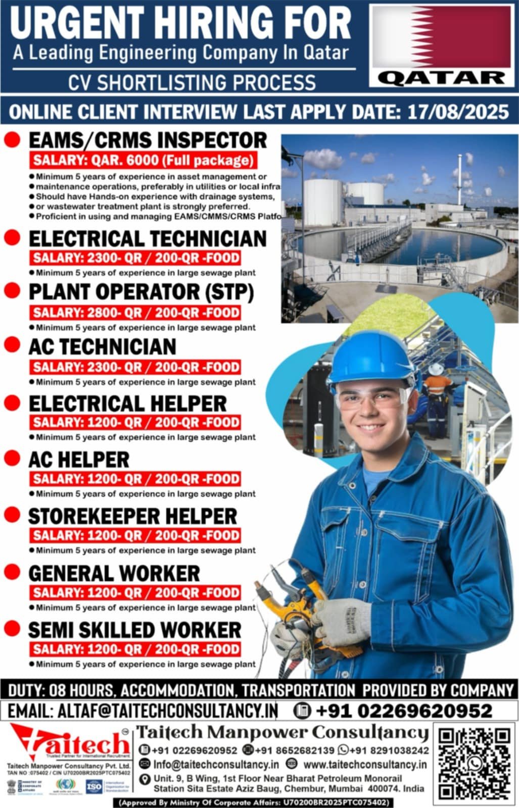Urgent Job Opportunities in Qatar Engineering Company- Apply Now