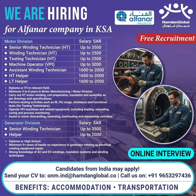 hiring for Alfanar company in Saudi Arabia – Online Interview
