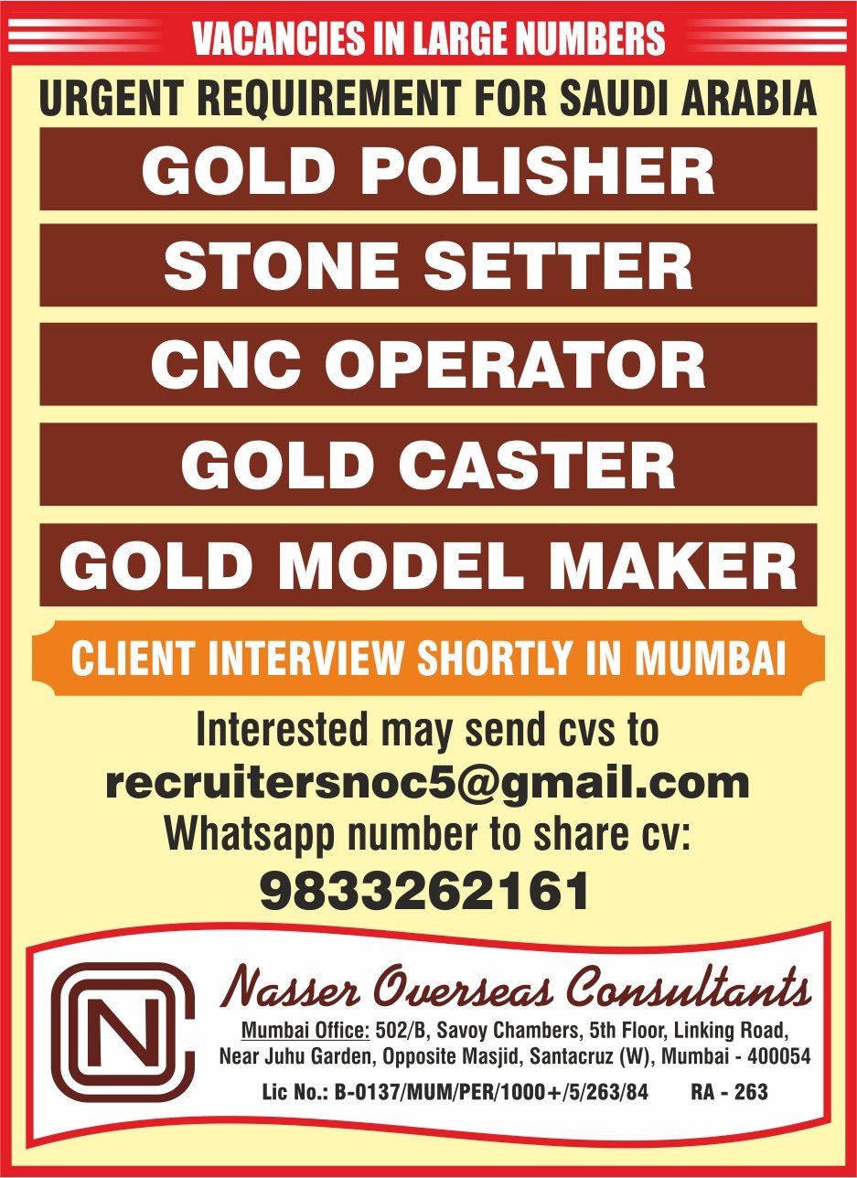 Saudi Arabia – Hiring For Gold & Jewelry Manufacturing Project