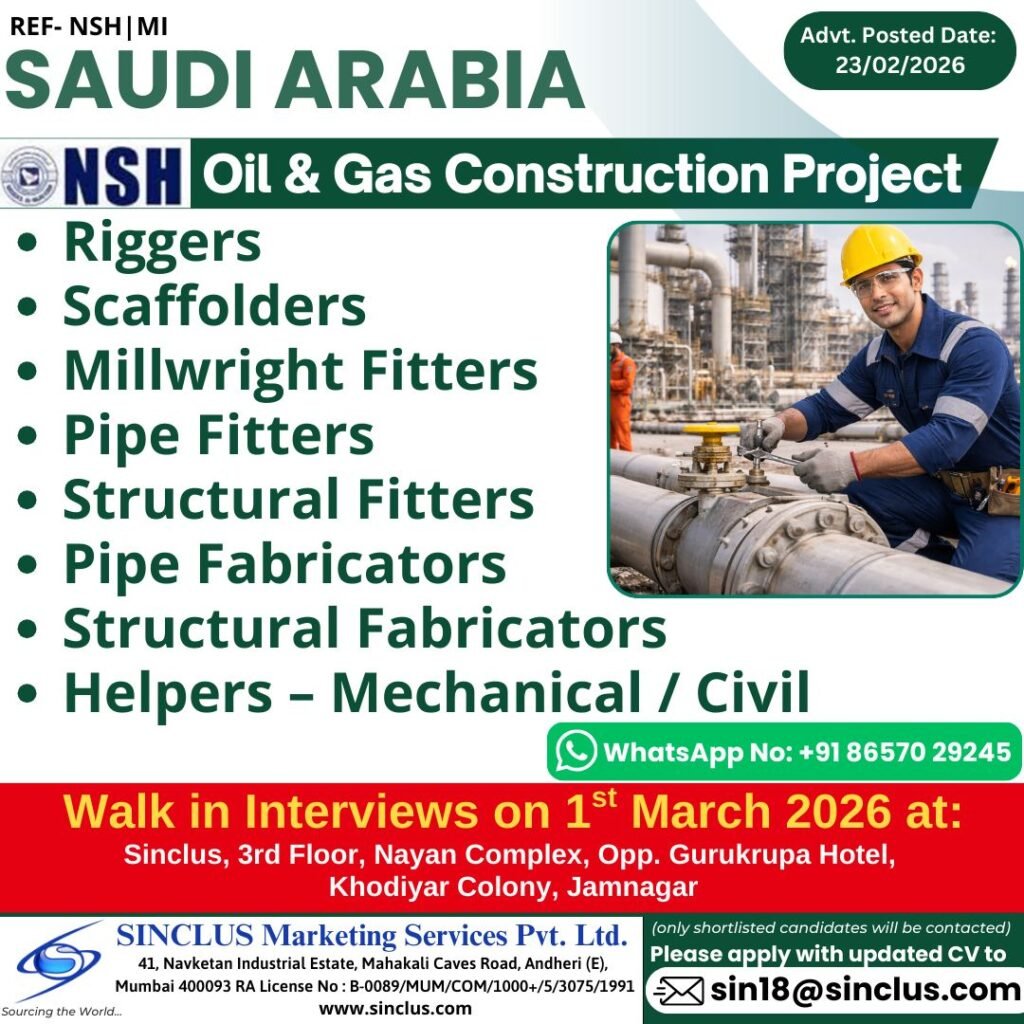 Qatar : Hiring For NSH Oil & Gas Construction Project in Qatar — multiple positions open
