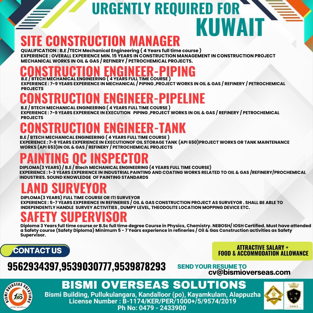 We are currently hiring experienced professionals for a reputed offshore project in Qatar.