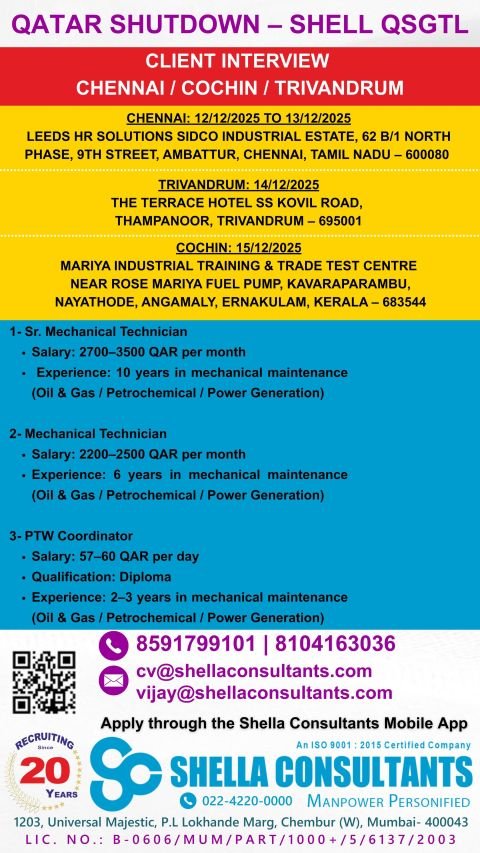 Qatar Shutdown Project Jobs 2025 – Shell QSGTL | Urgent Hiring