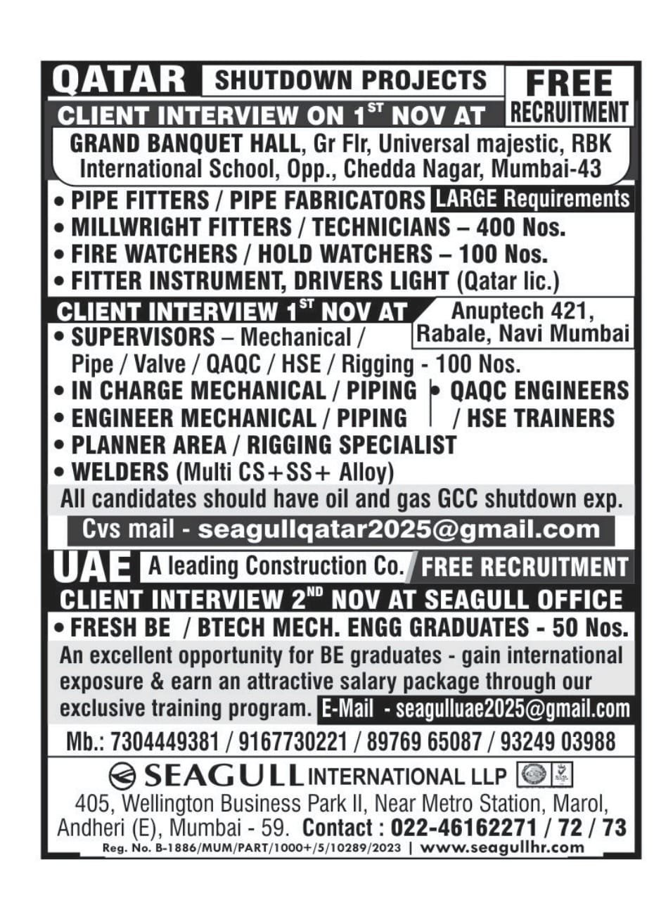 Read the ad to know more about the vacancies and the qualifications / Experience reqd. | Read the Ad carefully before you apply.