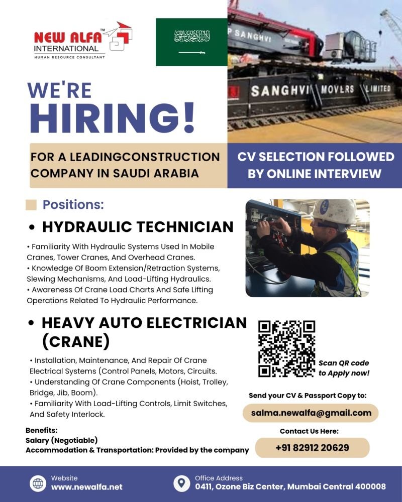 Recruiting For a Leading Construction Company in Saudi Arabia