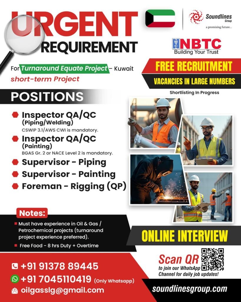 Recruitment For an Oil & Gas Shutdown Project in Kuwait