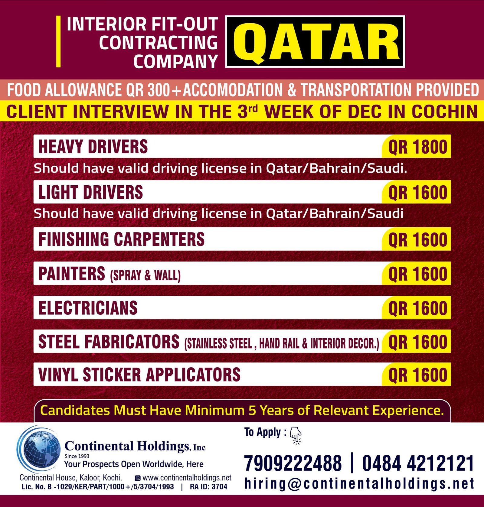 [Note: We try to provide genuine jobs .We dont have any role in Recruitment Process.Please enquiry about the Recruiting Agent before you accept the Job Offer / Pay any Money to them]