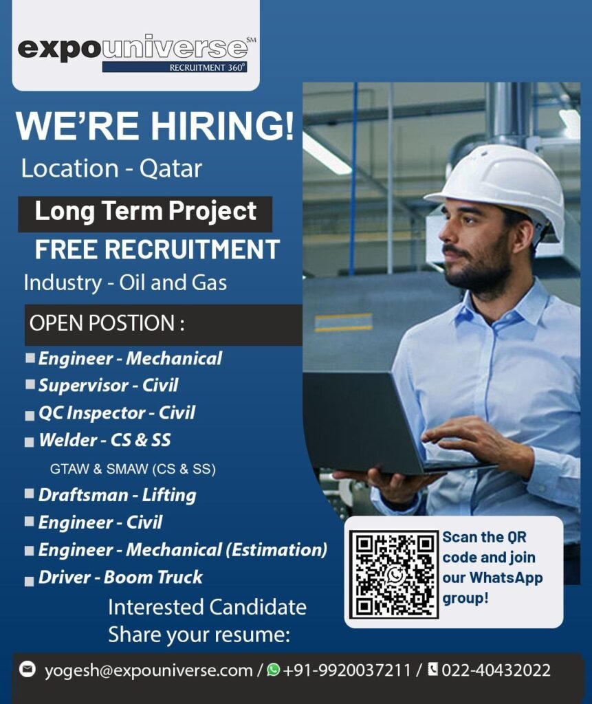 Recruitment for Qatar (Long-Term & Short-Term) – Oil & Gas Company