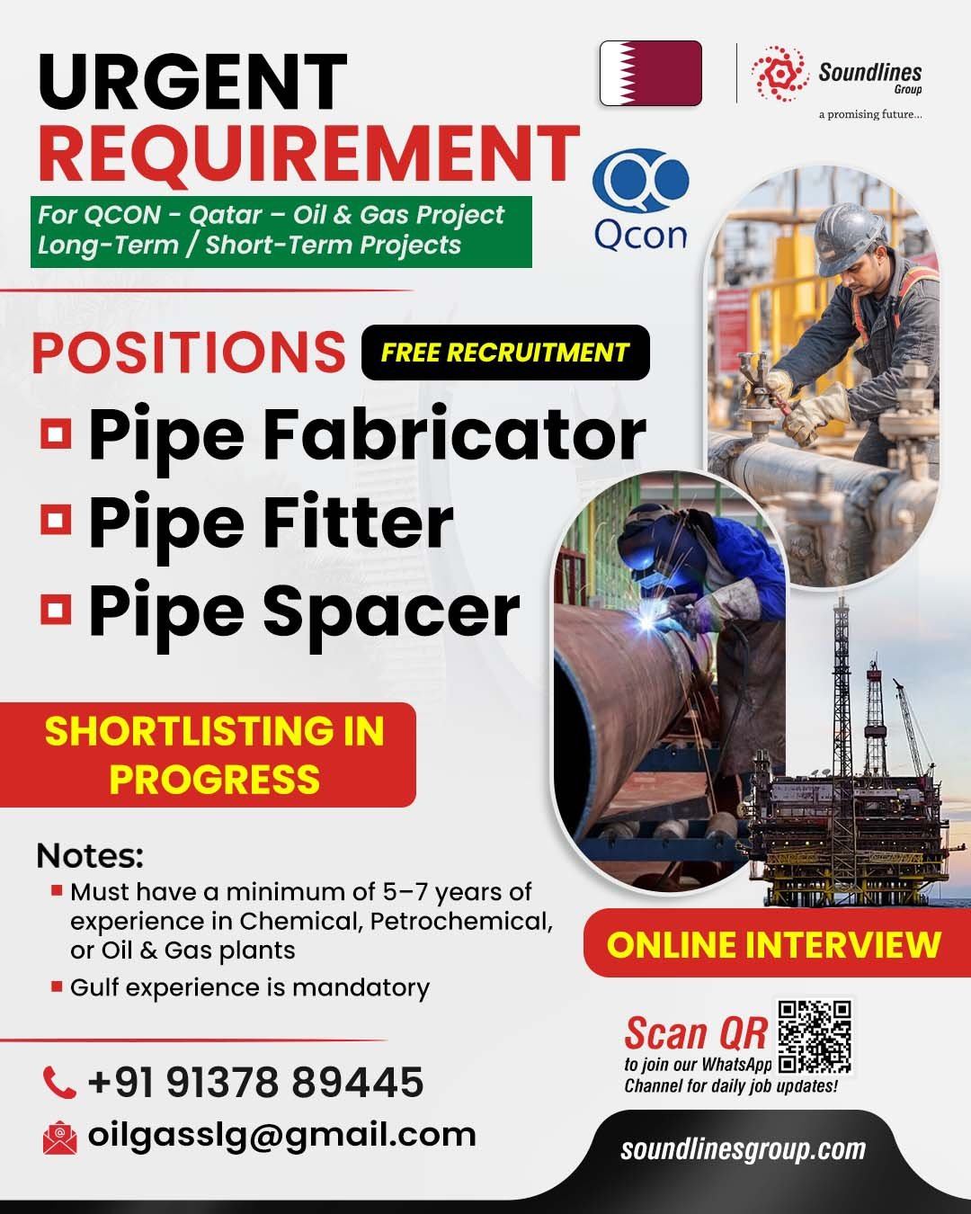 Recruitment For QCON – Qatar – Oil & Gas Project