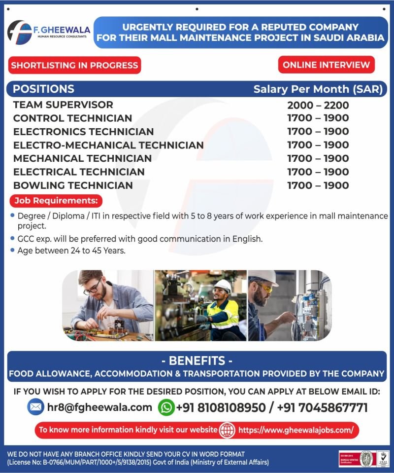 Interested Candidates can send the updated resume to mg26@mgheewala.com