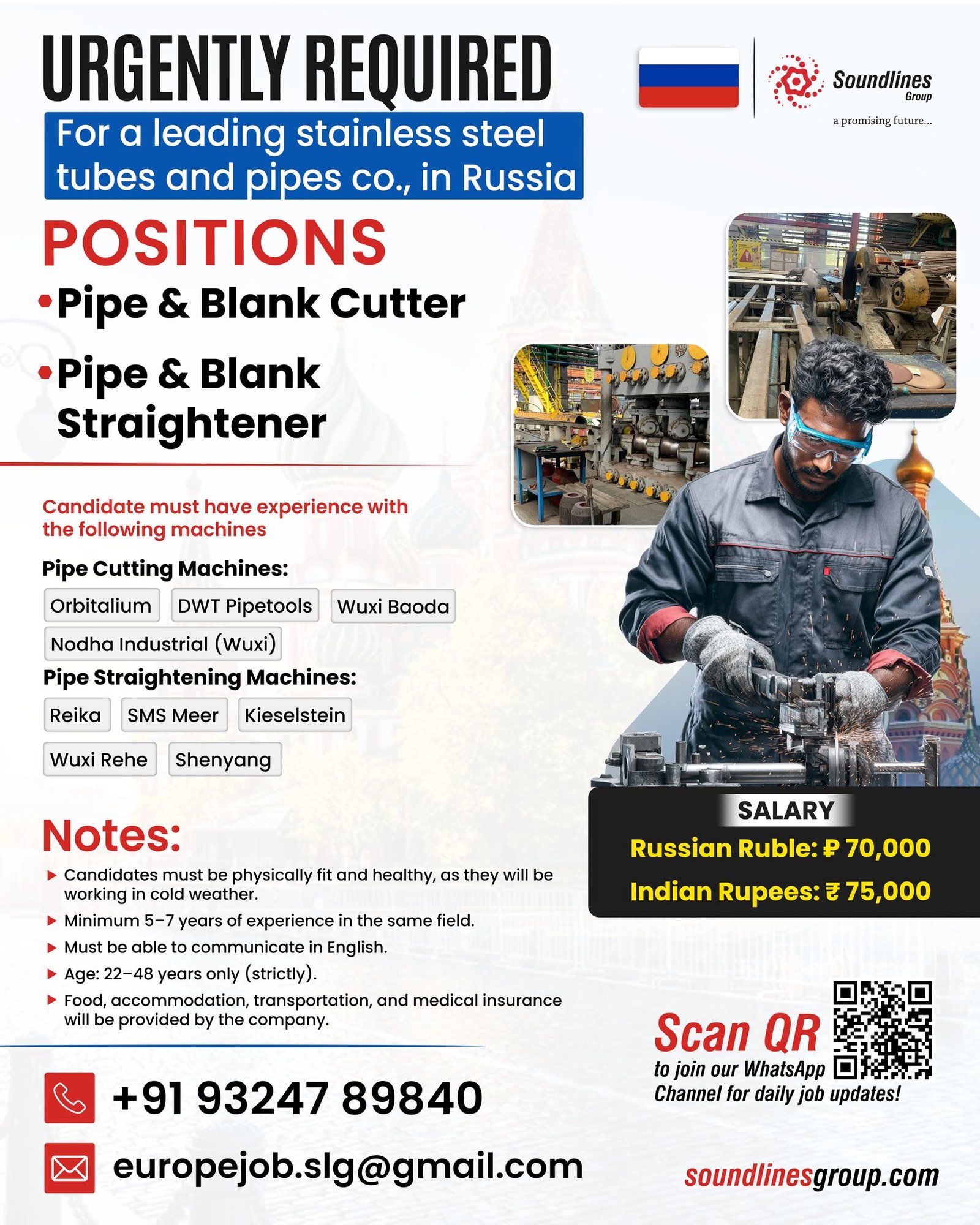 RUSSIA – Hiring For a leading stainless steel tubes and pipes co.