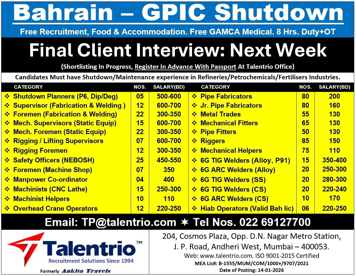 Note: Avoid making any advance payments to recruiters. Only proceed with payments after visa processing. Our platform is not engaged in any aspect of the recruitment process. We strongly advise applicants to thoroughly research the credibility of prospective employers and independently verify the authenticity of recruiters before making any financial transactions with them.