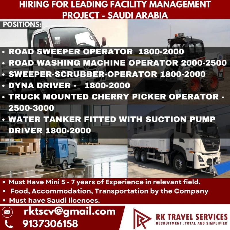 Are you looking for a stable overseas job in Saudi Arabia? A leading facility management project is currently hiring skilled professionals for multiple roles across technical, administrative, and support departments. This is an excellent opportunity for candidates with relevant experience to secure a long-term job in the Gulf region with attractive benefits.