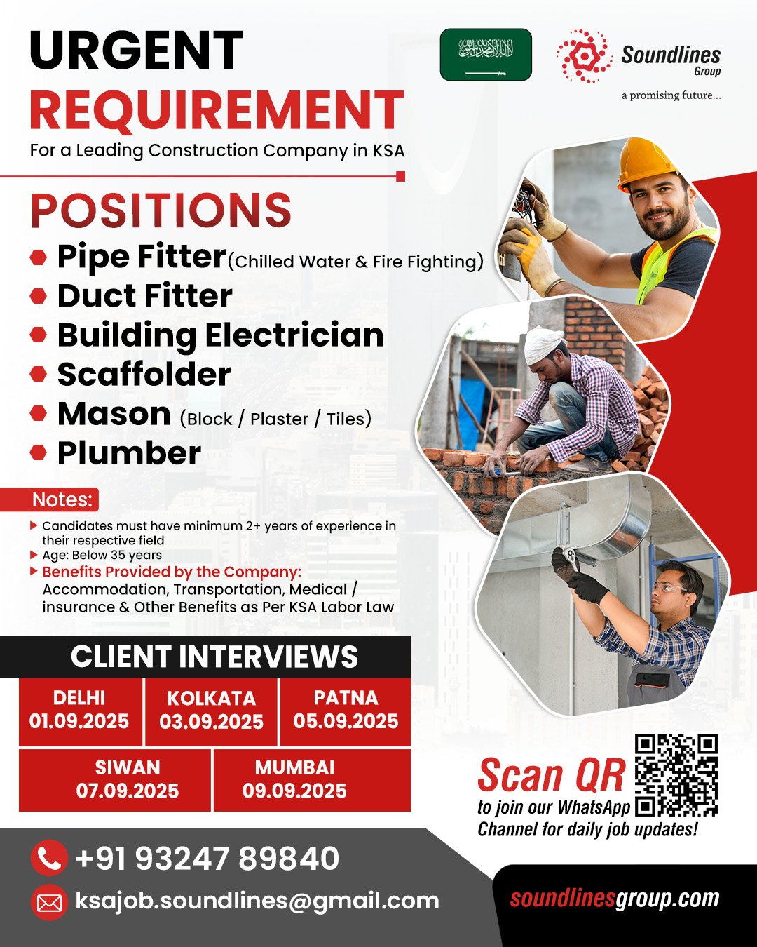 To apply kindly send your resume to ksajob.soundlines@gmail.com