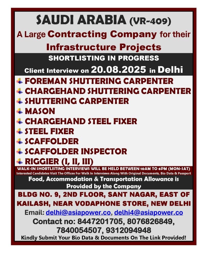 Saudi Arabia – Hiring For Infrastructure Project