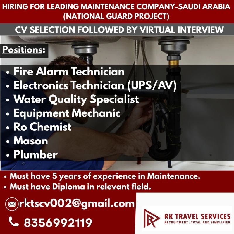 Interested candidates, please send your updated CV to rktscv002@gmail.com