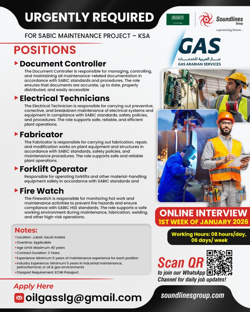 Saudi Arabia – Hiring For Sabic Maintenance Project
