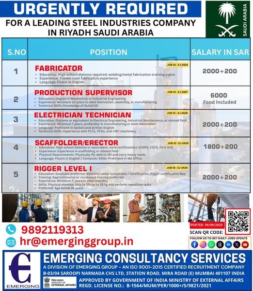 Saudi Arabia – hiring skilled professionals for a leading steel fabrication company