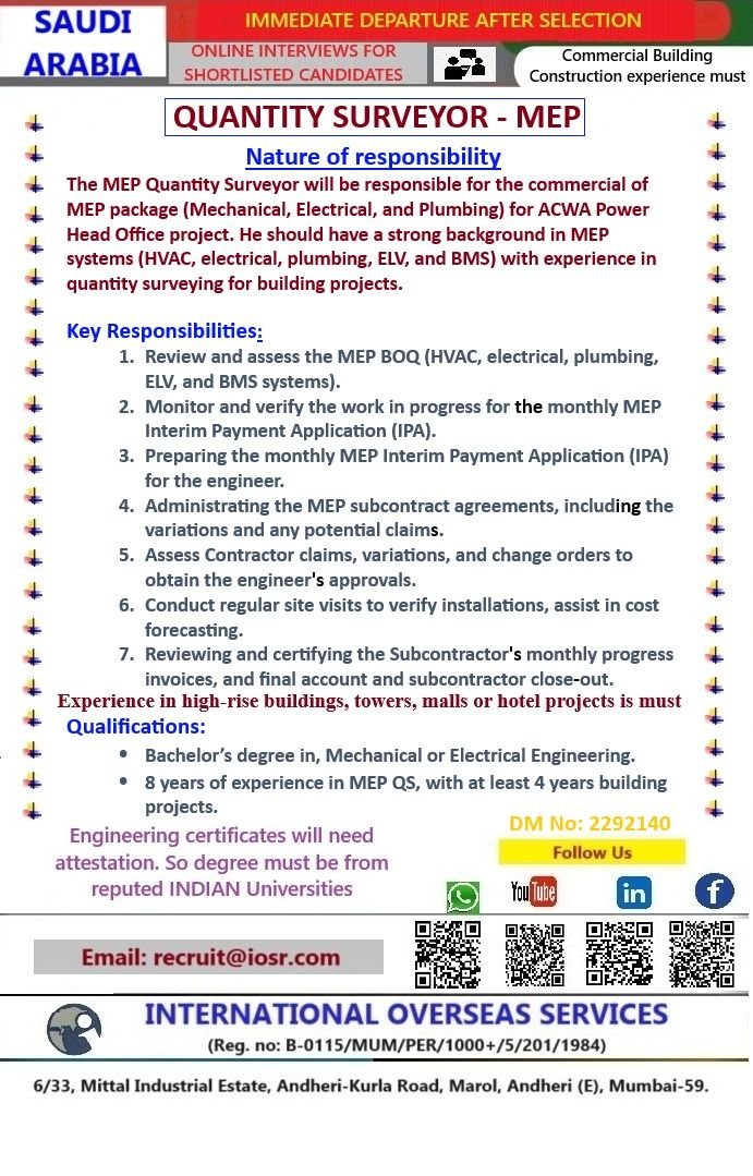 Applicants must have relevant Engineering degree – MECHANICAL or ELECTRICAL and relevant experience as mentioned in the job posted below.