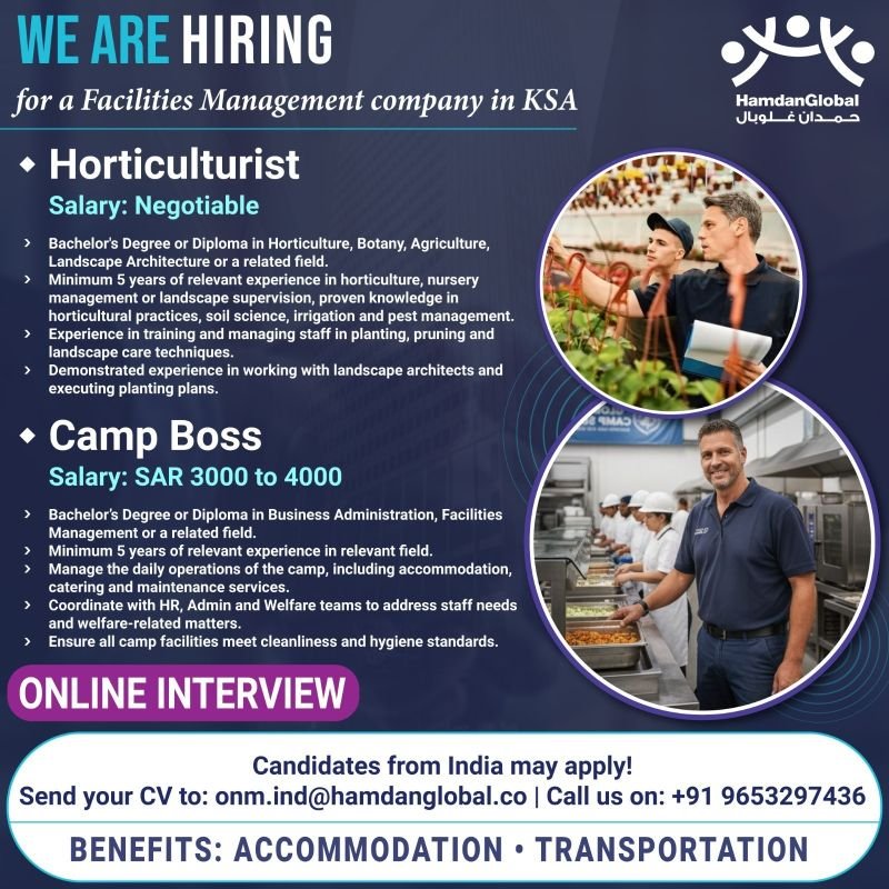 Saudi Arabia Jobs – Online interview for a Facilities Management company