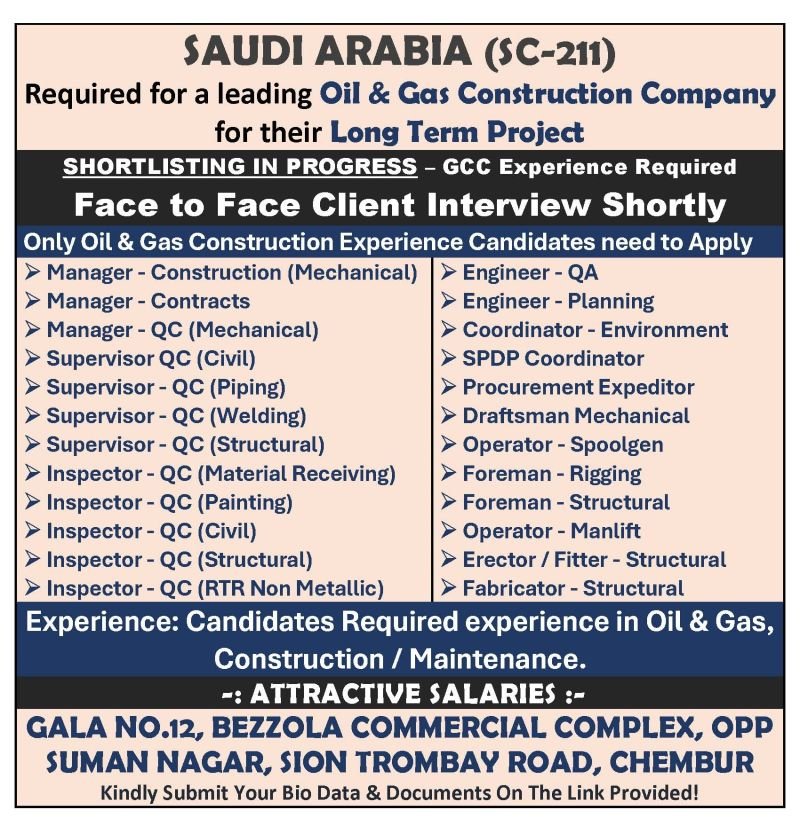 Saudi Arabia – Oil & Gas Construction Jobs – Apply Now