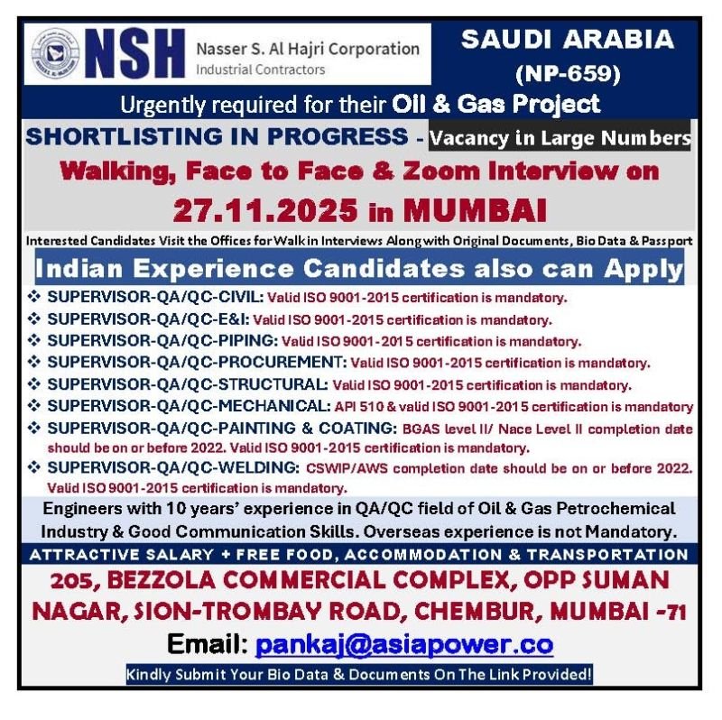 Saudi Arabia Oil Gas Jobs 2025 : Zoom Interview For NSH Company