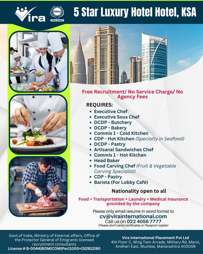 Saudi Arabia – Recruitment For 5 Star Luxury Hotel