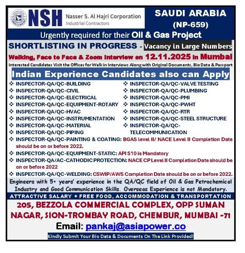Saudi Arabia : Recruitment For Oil & Gas Project – Apply Now